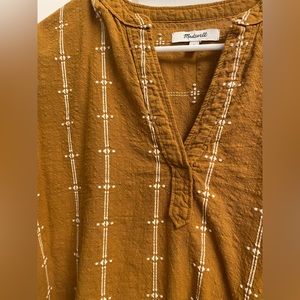 DONATING 2/7 Madewell Embroidered Mustard Colored V-Neck Top