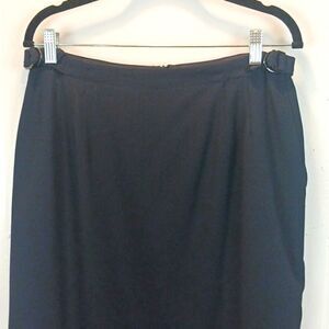 DONCASTER Black wrap classic wool blend casual/ career maxi skirt ( 12 )