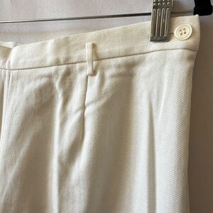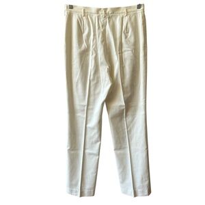 Womens size 12, cotton spandex blend, white, side zip and button closure, belt loops, relaxed fit, tailored, classic fit, straight leg, mid-rise, ankle length, pressed crease, flat front, side zip, hook-and-eye closure, cotton stretch, polished, office wear, business casual, refined, lightweight cotton blend, comfortable stretch, versatile neutral, timeless, elegant, sophisticated