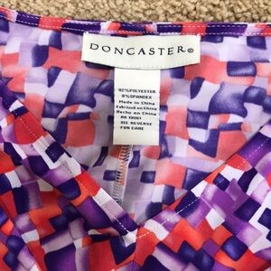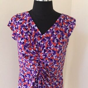 Doncaster size 6 Purple With Orange Dress. Ruched and pleated in the center. Cap sleeves and V neck. Great condition