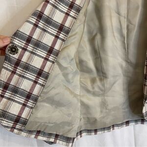 DONCASTER SPORT Women’s Tan White Red Plaid Cropped Puff Sleeve Blazer Size 4