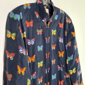 DONCASTER Vintage 90s Y2K Silk Feel Butterfly Novelty Print Navy Zip Jacket M