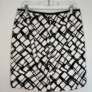 DONNA DEGNAN Size 10 Skirt Lined Black and White Knee Length Buckle Detail EUC