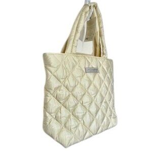 DONNA KARAN CASHMERE MIST QUILTED TOTE BAG IVORY NYLON SATIN PUFFER LARGE
