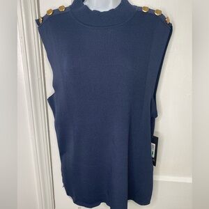 DONNA KARAN NWT Navy Sleeveless Top with Gold Button Accents