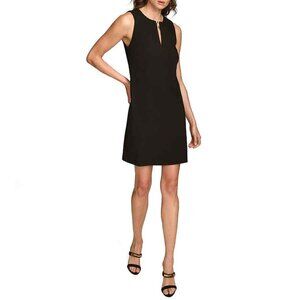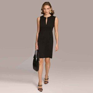 DONNA KARAN SLEEVELESS SHEATH DRESS W/ KEYHOLE NECK & SCULPTURED BUTTON CLOSURE