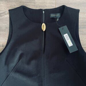 Sleek, effortless, and a touch daring...This sleeveless sheath elongates the frame and takes the classic LBD to a new level. Its minimalist silhouette is softened with a gently curved cut, while a sculptural button detail closes a refined keyhole neckline, giving this staple a unique, modern edge. Subtle tailoring flatters without fuss, making it just as at home at a gallery opening as it is in an evening dinner setting. It's truly a seasonless piece that transitions beautifully with heels, flats, or layered under a blazer.