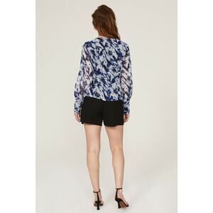 Add a touch of modern flair to your wardrobe with this DONNA KARAN NEW YORK Blue Abstract Print Top. Designed with a flattering V-neckline and front button closure, it blends elegance with everyday comfort. The long sleeves offer versatility for year-round wear, while the abstract print adds visual interest and contemporary style. Crafted in a lightweight fabric, it drapes beautifully and layers easily under jackets or over camisoles. Perfect for work, casual outings, or dressed-up evenings. This Size L top provides a relaxed yet polished fit that complements a variety of looks.