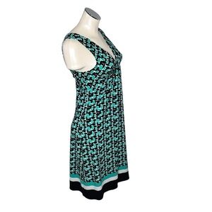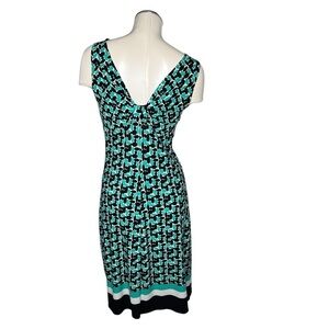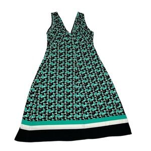 DONNA MORGAN Geometric Green Black White Sleeveless Midi Dress Size 6