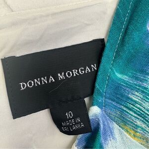 DONNA MORGAN Linen Floral Midi Dress 10 Puff Sleeve Square Neck Bohemian Prairie