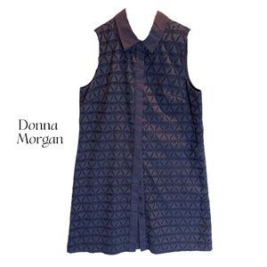 DONNA MORGAN NAVY GEO BURNOUT SHIRT DRESS TAILORED SHIFT DRESS, TRIANGLE MOTIF 8