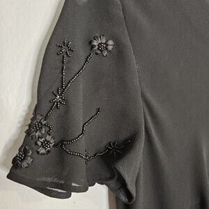 DONNA MORGAN Womens Size 8 Black Cocktail Dress Beaded Sleeve Dressy Semi Formal