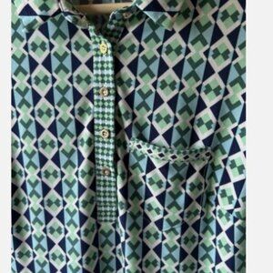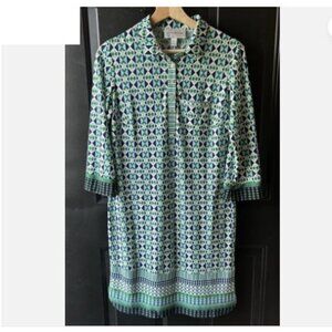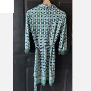 DONNA MORGAN Work Dress Green/Blue Print Collar Summer Stretch 3/4 Sleeve Size 8