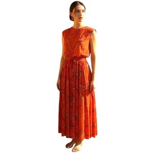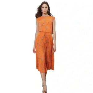DONNA MORGAN sleeveless pleated orange chain print day to dinner dress size 2