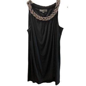 DONNA RICCO BLACK PARTY DRESS WITH BRAIDED SILVER CHAIN NECKLINE SIZE 10