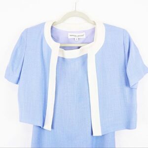 DONNA RICCO- Light Blue with White Trim Dress with Bolero Jacket, Size 8