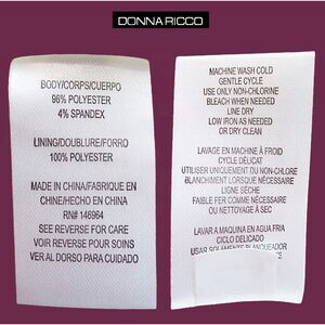 SHELL: 96% Polyester and 4% Spandex; and, LINING: 100% Polyester