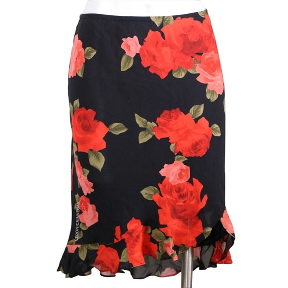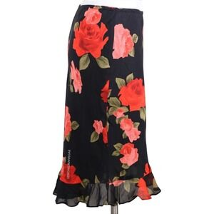 DONNA RICCO RED & BLACK ROSE PRINT SKIRT W/ RUFFLE