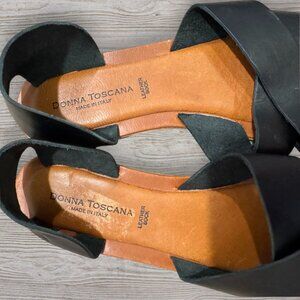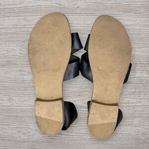 DONNA TOSCANA Black Italian Leather Flat Slip On Sandals 10.5