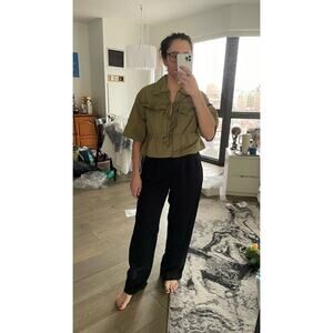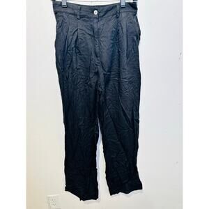 DONNI Black 100% Twill Pleated Front Button Relaxed Trousers Pants Size Medium