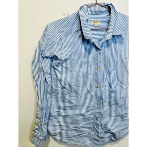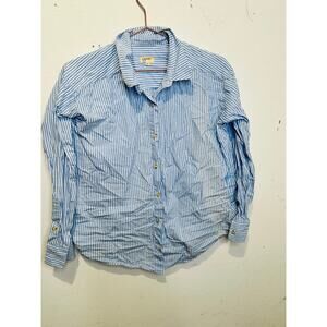 DONNI Blue White 100% Cotton Striped Oversized Collared Button Front Shirt XS