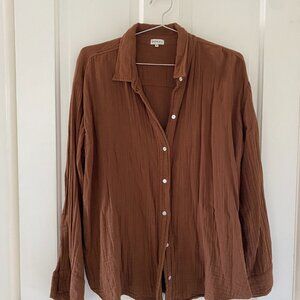 Stylish brown button down shirt. Features classic collar and button closure. Perfect for casual wear.