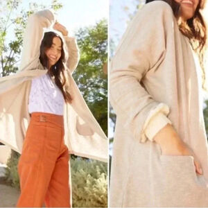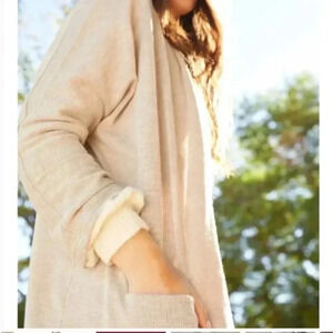 Size OSFA (one size fits all). DONNI sandwash neutral gray ribbed open front cardigan with pockets. Slouchy and flowy. Excellent used condition! Reasonable offers welcome!