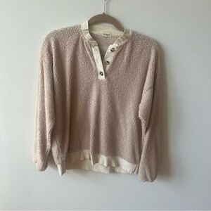 DONNI. Sherpa Henley. Tortoise buttons. Size small. 100% polyester