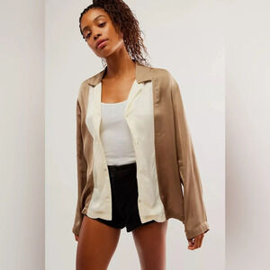 DONNI Silky Bowling Shirt by DONNI. at Free People in Whit