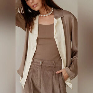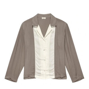 DONNI Silky Bowling Shirt Button Down Blouse in Mushroom