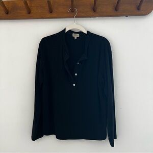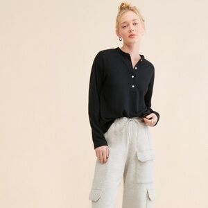 Fit: Relaxed silhouette, Henley button-up neckline, long sleeves