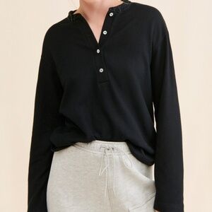 A cozy and versatile Henley-style pullover, featuring a relaxed fit and a button-up neckline for a casual yet elevated look. Crafted from a soft knit fabric, this sweater is perfect for layering or wearing on its own for effortless, everyday comfort.