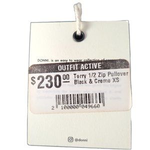 SOLD OUT DONNI Terry 1/2 Zip Pullover in XS in Black and Cream