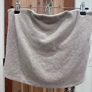 Linen color, knit material, rayon/polester/soandex. Inside shelf bra. PTP 15” unstretched Preloved 1