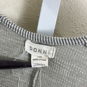 DONNI Women One Size Gray Beige Sandwash Stripe Ribbed Open Long Sleeve Cardigan