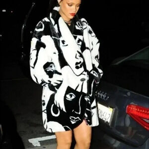 Elevate your winter wardrobe with this chic and stylish **Vintage Donny BROOKGRAPHIC FACES Faux Fur Coat**. Crafted in the USA, this coat features a unique graphic design that combines fashion with warmth, making it a standout piece for any occasion.