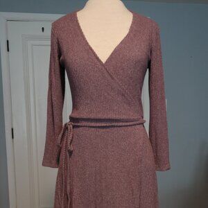 DON’T ASK WHY Mauve Pink Ribbed Wrap Dress Size OS