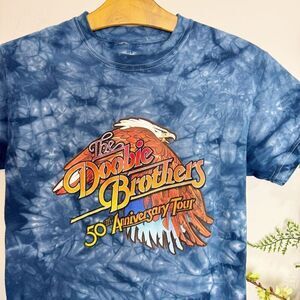 DOOBIE BROTHERS tshirt | band tee | tie dye blue top | 50th anniversary tour | small unisex | short sleeves