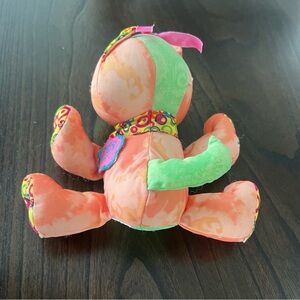 Delight your child with this vibrant stuffed cat toy, featuring a playful mix of green, orange, and pink colors. Perfect for cuddling and imaginative play.