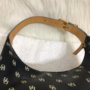Crafted from black coated canvas, with white "DB" signature pattern, trimmed with tan genuine leather and gold hardware.