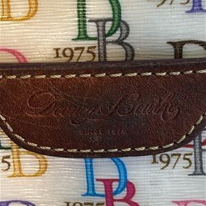 DOONEY & Burke vintage rainbow DB monogram in the year 1975 in a colorful repeating pattern, leather shoulder pad long shoulder strap with shoulder pad a front slip pocket and blue lining long adjustable leather strap, zip closure really great bag check all pics. Comment with any questions.