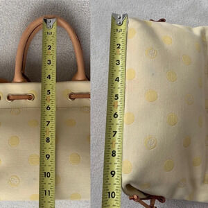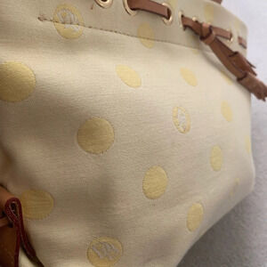 Dooney & Bourke tassel satchel/tote with yellow polka dots.
