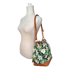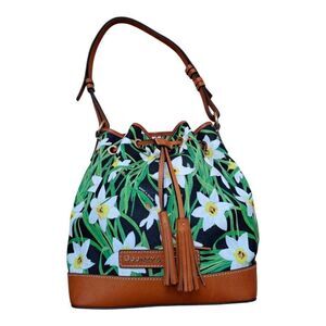 DOONEY & BOURKE Black Daffodil Tassel Drawstring Bucket Bag Brown Leather Trim
