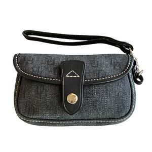 DOONEY & BOURKE Women's Black DB Logo Canvas Leather Trim Snap Clutch Western Wristlet. 6" x 4" x 1". Silver Hardware. Detachable Strap. Excellent Condition. Ships within 24 hours.
