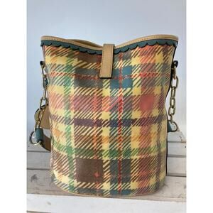 DOONEY & BOURKE COLORFUL COATED CANVAS PLAID SHOULDER BAG