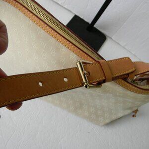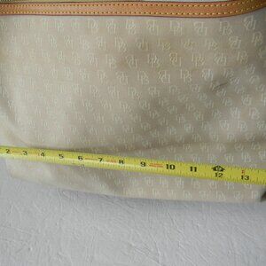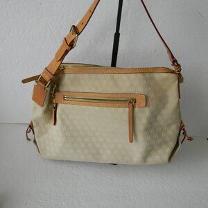 DOONEY & BOURKE CREAM SIGNATURE CANVAS LARGE SHOULDER BAG W/TAN LEATHER TRIM