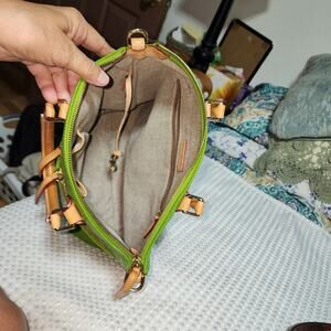 DOONEY BOURKE EUC GREEN LEATHER DILLON DOUBLE POCKET SATCHEL BAG