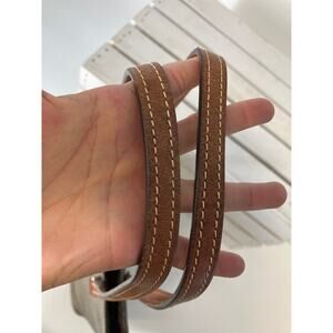 TWO DOUBLE LEATHER SHOUDER STRAPS THAT ARE NOT ADJUSTABE AND NOT REMOVIABLE.