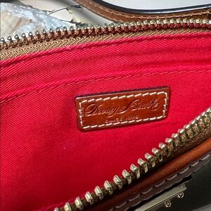 Feature a red, white, and blue cloth label with the Dooney & Bourke branding on the front and the bag's ID number on the back.