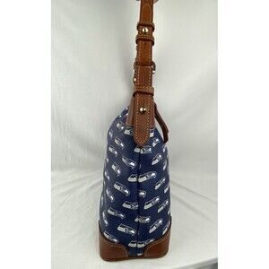 Dooney & Bourke NFL Seattle Seahawks Hobo Bag Purse AND Seattle Seahawks Continental Clutch Wallet, matching set. In Team color Blue with red lining. Both have been cleaned, leather accents cleaned and conditioned. Minimal signs of wear, some darkening on the inside of the lining right at the zipper seam, see last photo, otherwise in excellent preowned condition!